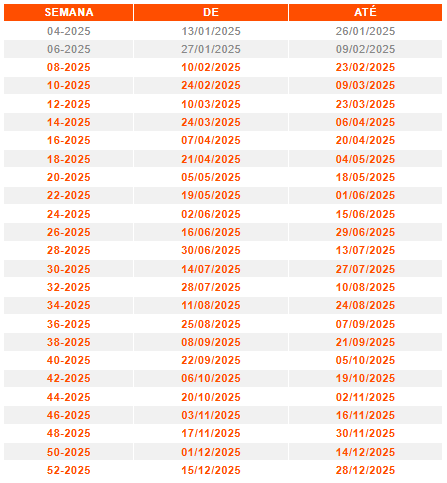 Abaixo, confira a tabela atualizada com as datas das bi-semanas para o ano de 2025. Planeje sua campanha com antecedência e escolha os períodos ideais para maximizar o impacto da sua marca.